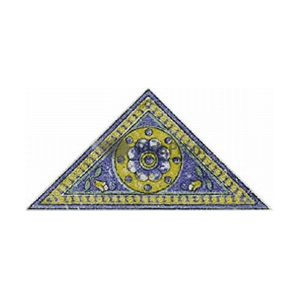 Отличительные черты Asturias — сине-желтая раскарска; растительные и цветочные узоры, вписанные в геометрические фигуры; витиеватые рамки под старину. Коллекция включает разнообразные напольные плитки, а также треугольную и квадратную вставку.